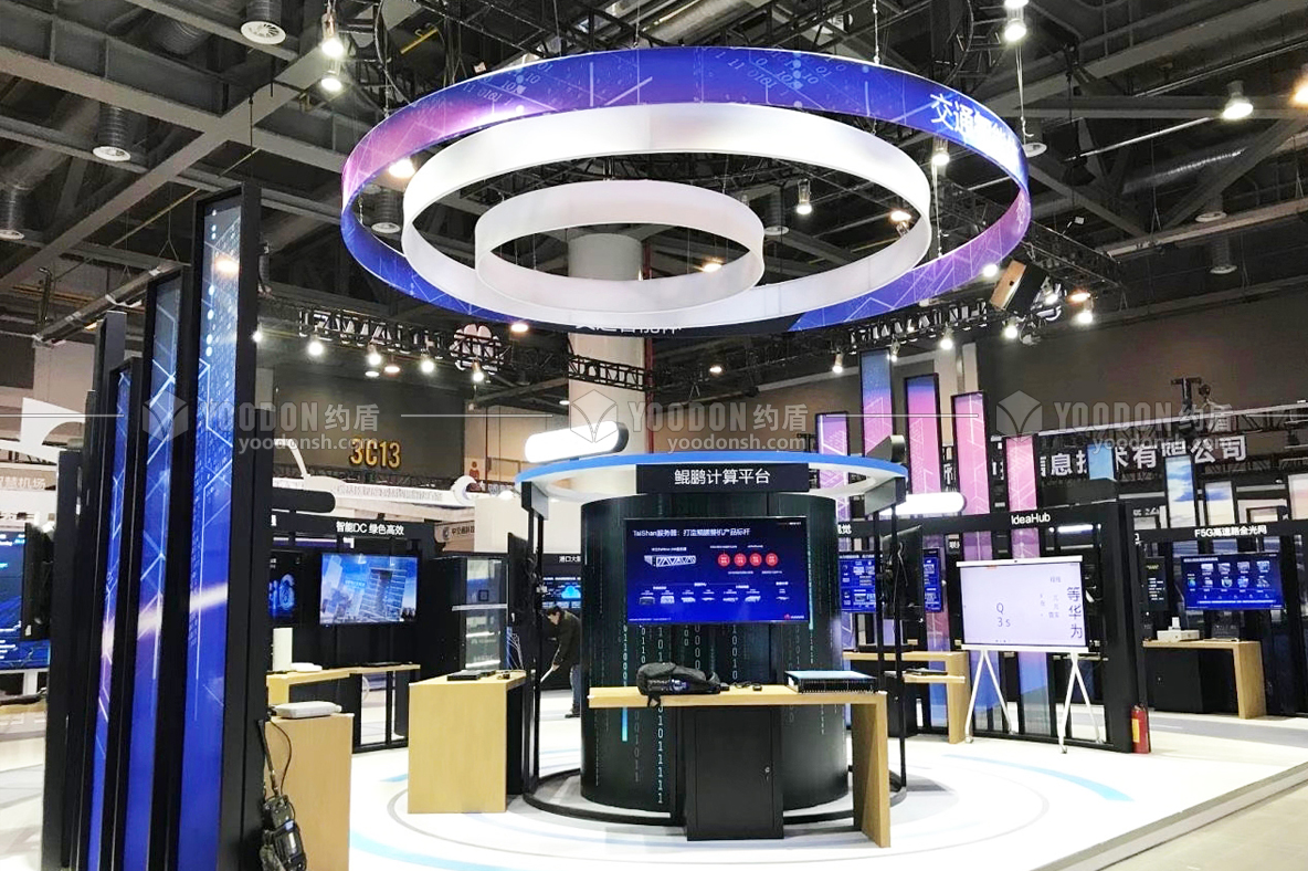 華為展臺搭建設(shè)計的風格高科技高智能,引領(lǐng)時代的潮流。